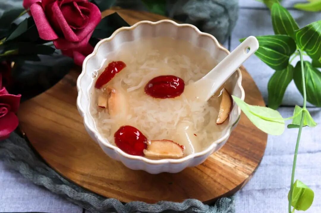 枸杞的添加不仅能为甜汤增添一些营养,还有助于养护眼睛和提高免疫力。