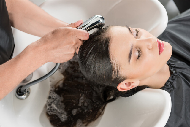 在艾叶水中加入适量清水,等水温适宜后,用毛巾包覆头发10分钟,再清洗干净。