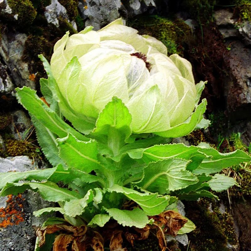识别特征:多年生草本,全体密被白色或淡黄色长柔毛,高10~25厘米。茎常中空,棒状。叶万生,密集,无柄,叶片披针形或狭倒卵形,边缘羽裂或具粗齿,密被白色长茸毛。头状化序多数,密集,腹裹白色棉毛,呈圆球状;总苞片狭长倒披针形,无毛,有光泽,有3条明显纵脉:花两性,全为管状花,裂片披针形;花药基部箭形;化柱线形。瘦果,扁平,棕色,有不明显的四棱;有冠毛2层。花期6~7月。生于高山上,以流沙滩上的岩石缝中较多。分布于四川、云南、西藏等地。