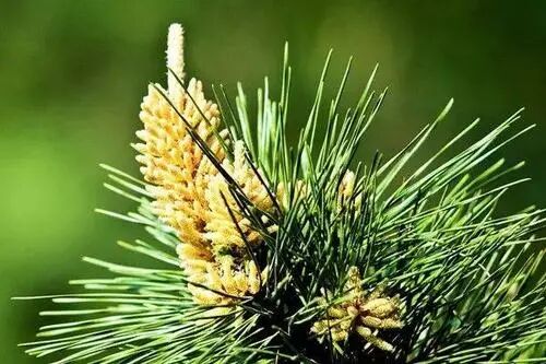 【生境分布】常绿乔木,高可达20米。生于山坡上或人工种植。树皮红棕色,呈不规则长块状裂。小枝常轮生。冬芽长椭圆形,芽鱗红褐色。叶针形,二针一東,细长而柔韧。春季开花,雄花为长而稠密的花束,成熟后散出大量黄色花粉(松花粉);雎花序成球形。球果卵状椭圆形,果鳞木质。叶名松针,随用随采。采伐松木时取松节。4~5月摘取雄花序,置簸箕内晒干,轻轻敲击,收采松花粉。12月至次年2月,摘初生花穗,晒干,研成细末,即为松花芯粉。