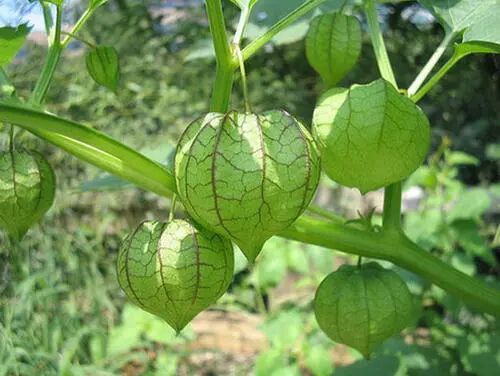 【生境分布】一年生草本,高30~60厘米。生于田野、屋旁、庭院。茎多横卧斜生,多分枝、有短柔毛。叶互生,叶片卵圆形,长4~8厘米,宽2.5~5厘米,边缘有不规则的锯齿。花单生于叶一腋,灰黄色。花后花萼增大如灯笼,有棱5条,成熟时果萼绿色。浆果球形,淡绿色,有多数种子。夏秋采全草,切段晒干。