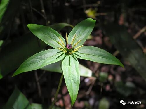 为百合科多年生草本植物蚤休(七叶一枝花)及同属多种植物的根茎。我国分布甚广,南北均有,主产于长江流域及南方各省。秋末冬初采挖,除去须根,洗净晒干,切片。