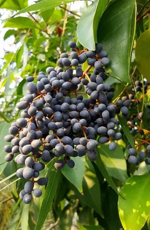 中药识别:果实呈卵形,椭圆形或肾形。表面黑紫色或灰黑色,皱缩不平,基部有果梗痕。体轻。外果皮薄,常附有白色粉霜,中果皮较松软,易剥离,内果皮木质,黄棕色,种子肾形,紫黑色,油性。气微,味甘、微苦、涩。