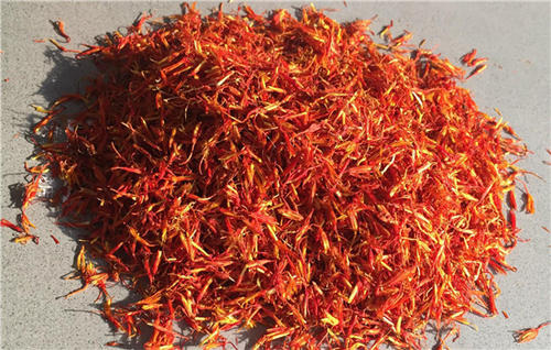 为菊科二年生草本植物红花的筒状花冠。产于河南、湖北、四川、云南、浙江等地,均为栽培。夏季开花,当花色由黄转为鲜红时采摘,阴干。性味归经:味辛,性温。归心、肝经。