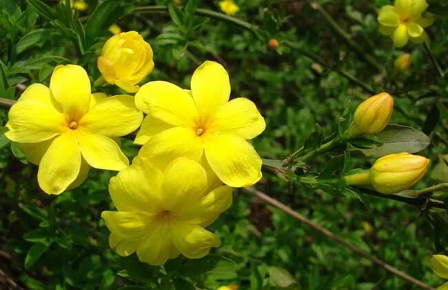 迎春花不仅在百花凋零的寒冬冲寒冒雪,绽开她那金黄色的小喇叭似的花,压满碧绿的枝条,黄澄澄的一片,犹如金光灿烂的繁星降落人间,一派蓬蓬勃勃、生气盎然,不但能为新春佳节增添欣欣向荣的气氛,而且还是一味民间常用的草药。