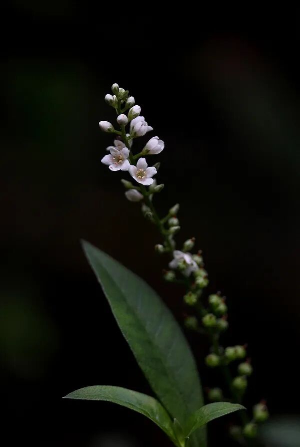 识别特征:多年生草本,高30~70厘米。根状茎细长,棕红色,有匍匐枝。茎直立,柔弱,淡褐色,基部带红色有黑色小蹼。叶互生,叶长椭圆状披针形,两端渐尖,全缘,上面绿色’,有黑色腺状斑点,下面淡绿色,中脉稍突出。总状花序顶生,细长柔弱,稍有腺毛;苞片三角状披针形,專片膜质,中部有黑色点;花冠深5裂,自色。蒴果小球形,果梗长于蒴果。花期5~7月;果期9~10月。生于水边、路旁、湿地。主产于我国中南、东南各地。