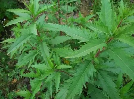 形态特征:一年生的草本植物茎具棱,分枝多,枝叶揉碎时有臭香气:叶互生,矩圆状披针形,波形齿缘,具短柄:4~10月间开白绿色小花,腋生及顶生穗状花序。果小
