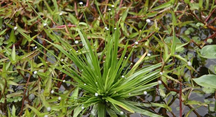【生境分布】一年生草本,高15~20厘米。生于田埂或池沼边潮湿处。须根细软。叶丛生,线状披针形,叶片有明显横格。花茎从叶丛中生出,直立,纤细,比叶长,具纵棱,基部有筒状叶鞘,头状花序顶生,圆球形,花药白色。蒴果倒卵形,3裂。秋季采全草,洗净,晒干。