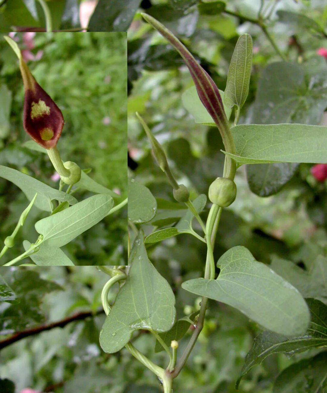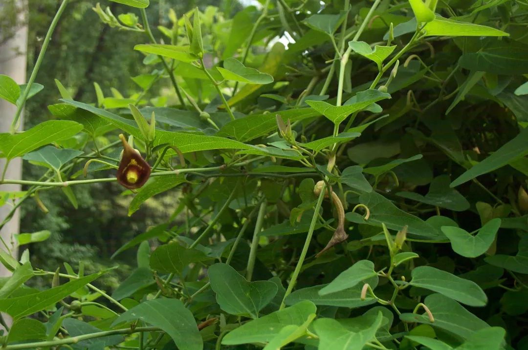 【生境分布】多年生草质藤本,长达1米以上。生于堤岸、田野、山坡、路旁。根粗壮,有香气。茎初生时直立,后攀援。叶互生,叶片三角状长圆形,基部两侧突出如耳。花单生叶腋,斜漏斗形,紫绿色,镰状弯曲。蒴果长圆形,下垂,形如小瓜,熟后裂成6瓣。四季可采,秋季为佳,挖取根,洗净晒干。夏采藤叶,秋采果,晒干。