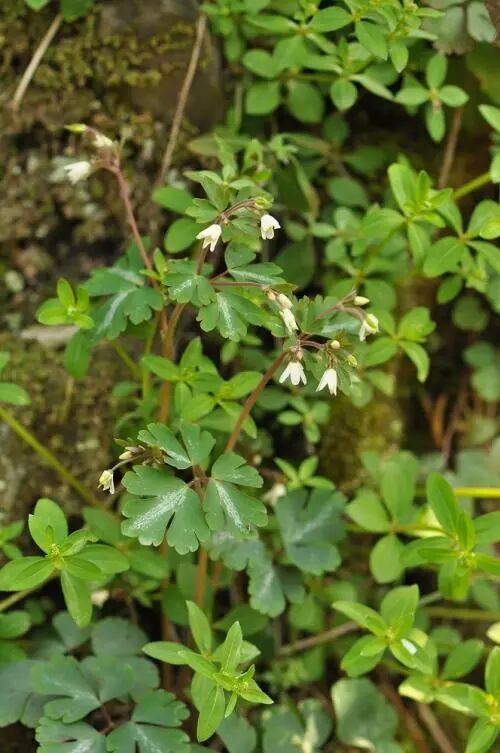 【生境分布】多年生小草本。高15-30厘米。生于山坡、田边、石缝阴湿处或杂草丛中。根茎块状,倒卵形,灰黑色,内部肉质白色,形似“老鼠屎”。基生叶丛生,有长柄;三出复叶,各小叶再三裂,叶面绿色,背面紫色;茎生叶有短柄,比根生叶小。花单生于茎顶及叶腋,白色,外带紫红色。果熟时裂开。种子黑色,3~4月开花。果实立夏前成熟全草接着就枯死。全草入药,1~4月采集,鲜用或晒干。