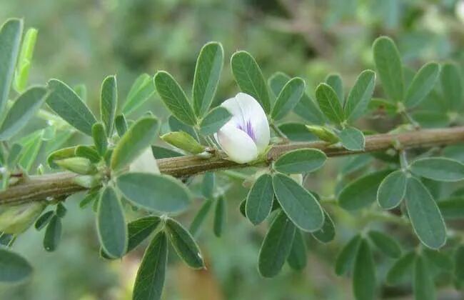 生境分布:亚灌木,高70-100厘米。生于山坡、路旁、荒坪隙地。根细长。茎直立。三出复叶互生,小叶倒披针形中央小叶较两侧小叶稍长,先端截形微凹,有小尖头,基部窄楔形,全缘,背面密生白色丝状毛。花单生于叶腋或2~4朵簇生,蝶形花冠淡黄白色,心部带红紫色晕。荚果卵形、细小。枝端常生有灰色球状虫瘿。夏、秋采全株(连根),切段晒干。