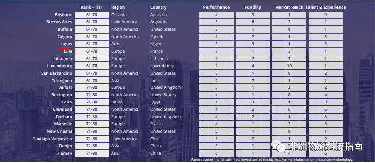 该报告还列出了非洲表现最好的城市,包括拉各斯、内罗毕、开普敦、约翰内斯堡和阿克拉。