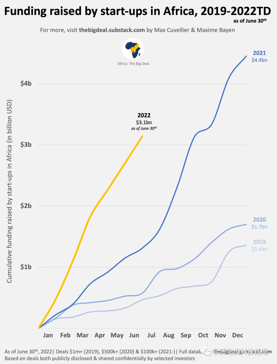 【非洲初创企业筹集资金】 非洲的初创企业在 2022 年上半年筹集了超过 30 亿美元,并在上半年创下了有史以来最强劲的业绩。事实上,2022年第二季度的整体表现要优于2021第二季度:肯尼亚为12倍,埃及为2.4倍,尼日利亚为2.3倍,南非为1.3倍。第三季度将是决定性的,尤其是因为去年表现非常强劲,但肯定有乐观的空间。