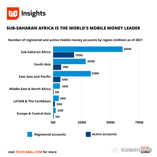 GSMA 报告中的额外信息介绍,非洲已经有超过 1.84 亿个活跃的移动现金钱包,而一年多前只有 1.61 亿个账户。