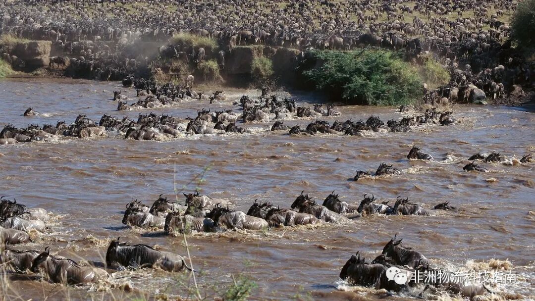 今天非洲物流科技指南带大家来领略一下世界上最壮观的自然奇观之一角马大迁徙。这是数以百万计的角马每年一次的运动,伴随着大量斑马、格兰特瞪羚、汤普森瞪羚、羚羊和黑斑羚穿越更大的马赛马拉-塞伦盖蒂生态系统。