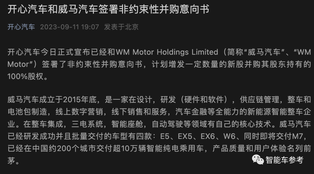 本以为这是威马再次陷入动荡的预示,没想到一夜之间,二手车上市公司开心汽车又宣布和威马签署并购意向书。
