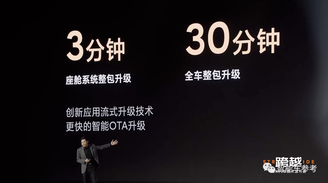 另外一个特点就是快。开机启动快:1.49s极速启动;升级也快:座舱系统升级只要3分钟,全车升级只需要30分钟。