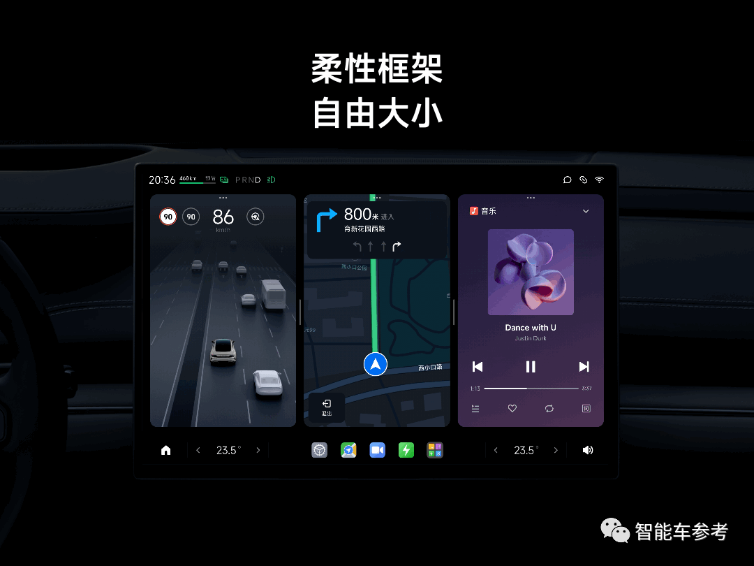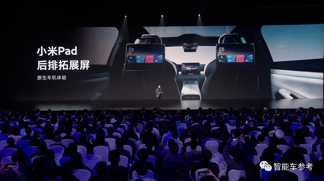 另外还有两块是后排座椅上的拓展屏,比如小米Pad可以直接接入,“一秒变车机”实现控车: