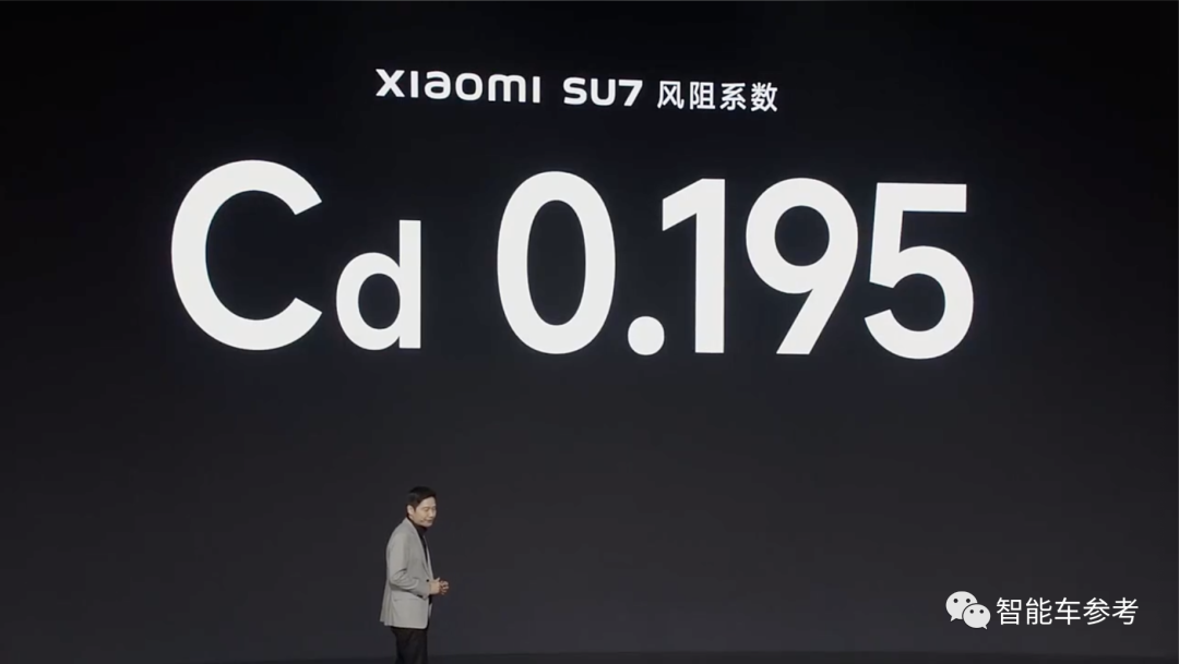 小米SU7外观设计已经曝光很久,这次则正式公布了风阻:0.195Cd,官方称是全球量产轿车中风阻最低。