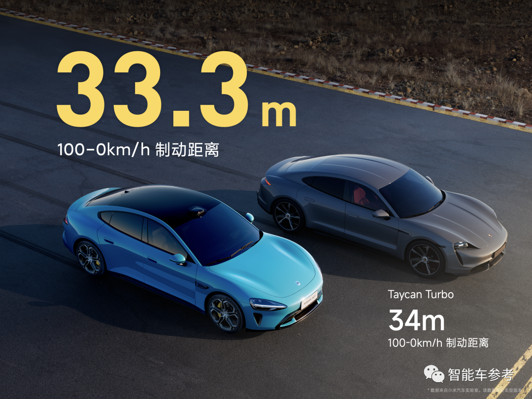 不仅能跑,还能刹。100km/h-0的制动距离为33.3m,也小于Taycan Turbo。
