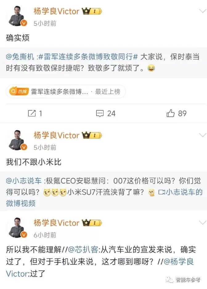 胡的加盟也引起了一些热议,据说吉利的员工在听说“胡总”去小米后,都开始关注小米造车进展,认为“靠谱”,甚至有人追随去了小米。