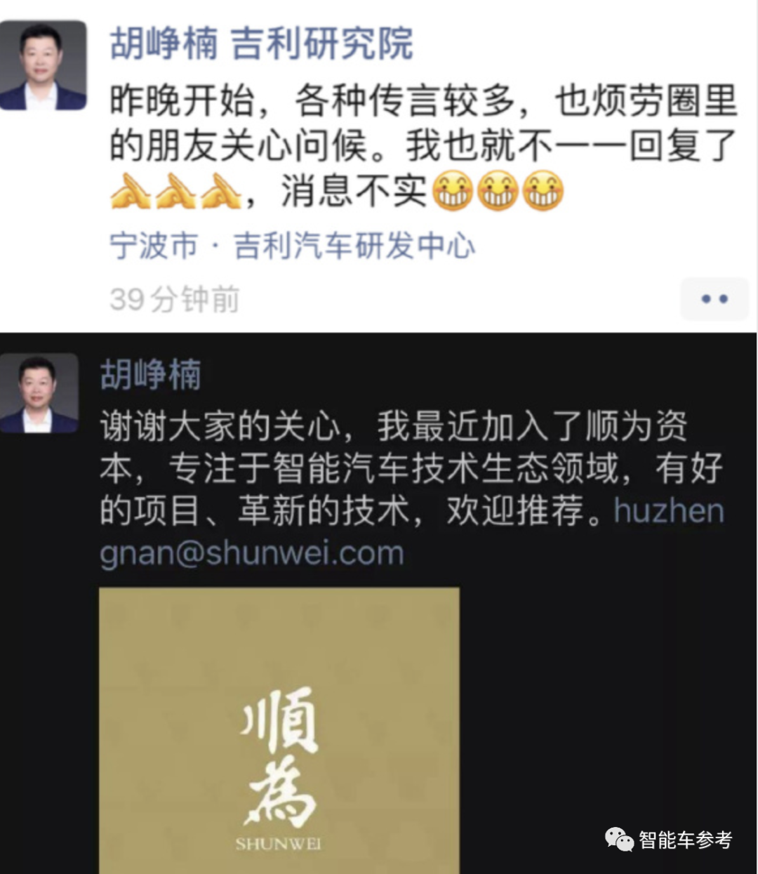 同时胡还是小米汽车的高级顾问,之所以没有直接入职小米,据说是有竞业的考量。