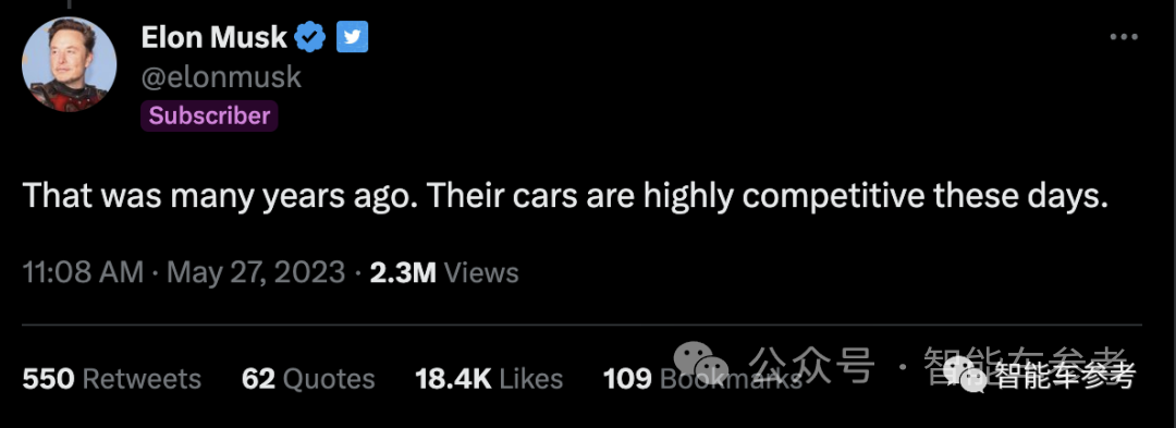 这个时候比亚迪早已经起势,在中国市场终结了特斯拉的“独孤求败”,于是有人翻出了当年马斯克这段视频,问马斯克如何看待。