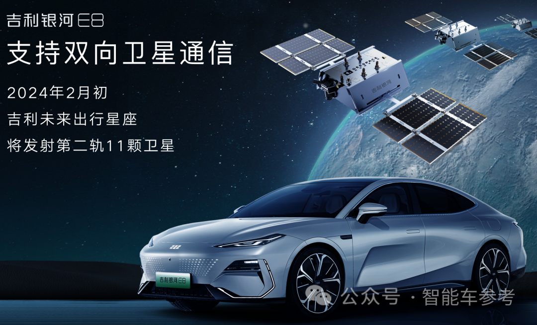 吉利银河E8,B级纯电轿车,车长超5米,高通8295座舱芯片,45寸8K超清屏,800V平台,最快零百加速3.49秒,双向卫星通信,起售价只要17.58万元。