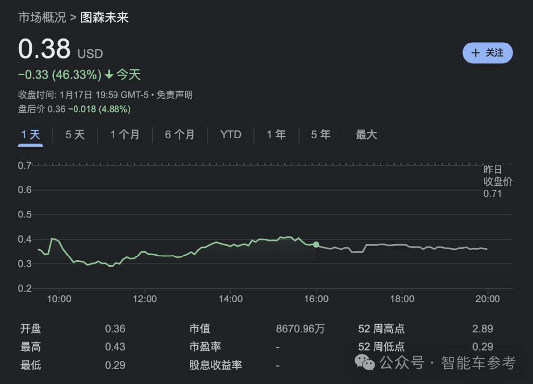 图森在公告中预计,公司股票的最后交易日大约在今年2月7日(当地时间)。