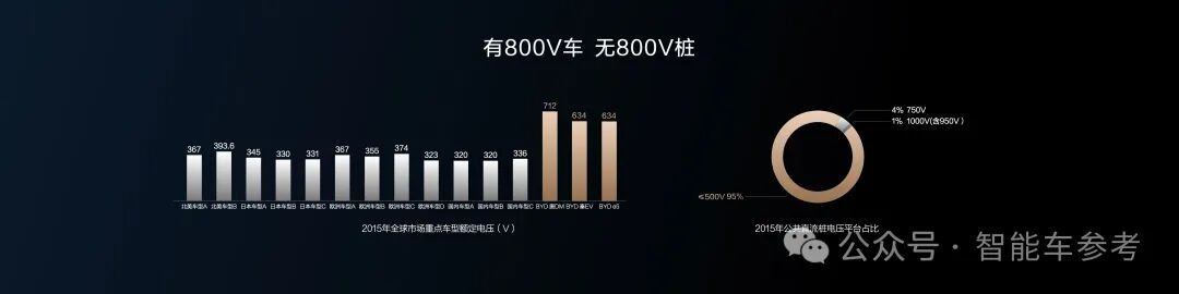 但这是2015年,比亚迪有了800V的车,但市面上根本没有800V的桩。甚至如今,绝大多数国标公共充电桩还是400V标准。