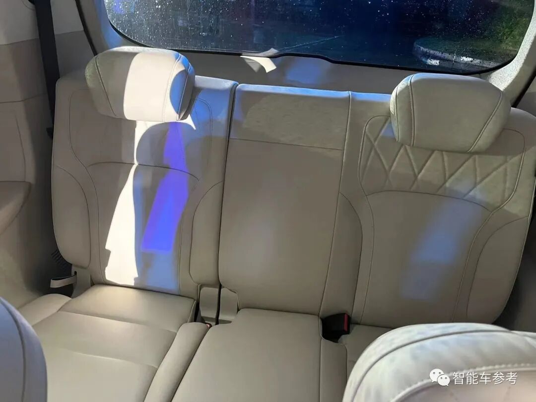 轴距3275mm,车长超5.4米,六座NAPPA皮革包裹均支持电动调节,配备加热通风。