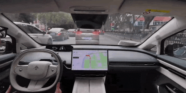 这里城市NDA先是减速避让,然后确认周围环境中车辆处于安全距离后毫不迟疑的通过路口。