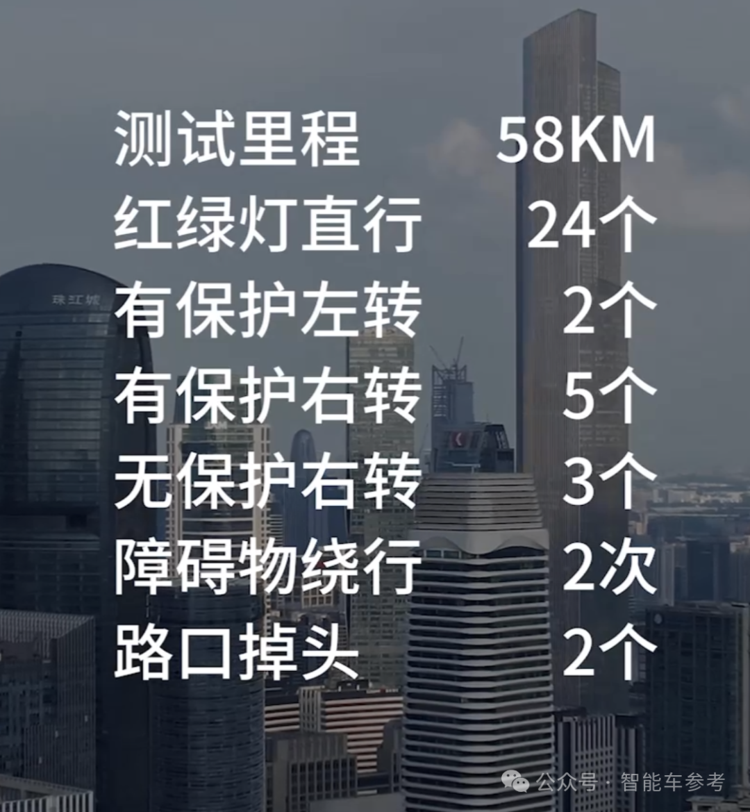 为了增加挑战性,需要完成测试路线去程和返程的完整测试,总里程58公里,包含24个红绿灯直行、2个有保护左转、5个有保护右转、3个无保护右转、2次障碍物绕行、2个路口掉头等道路场景。