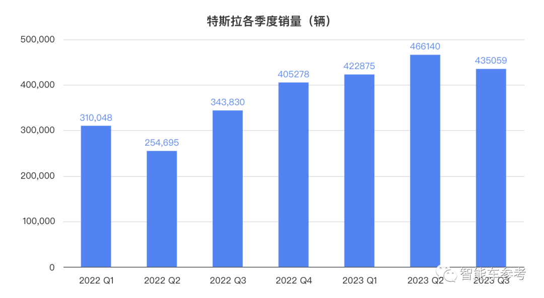 全球共交付435059辆,比上一季度减少了6.67%,虽然有部分工厂停产升级产线的因素在,但也能说明降价措施没那么管用了。