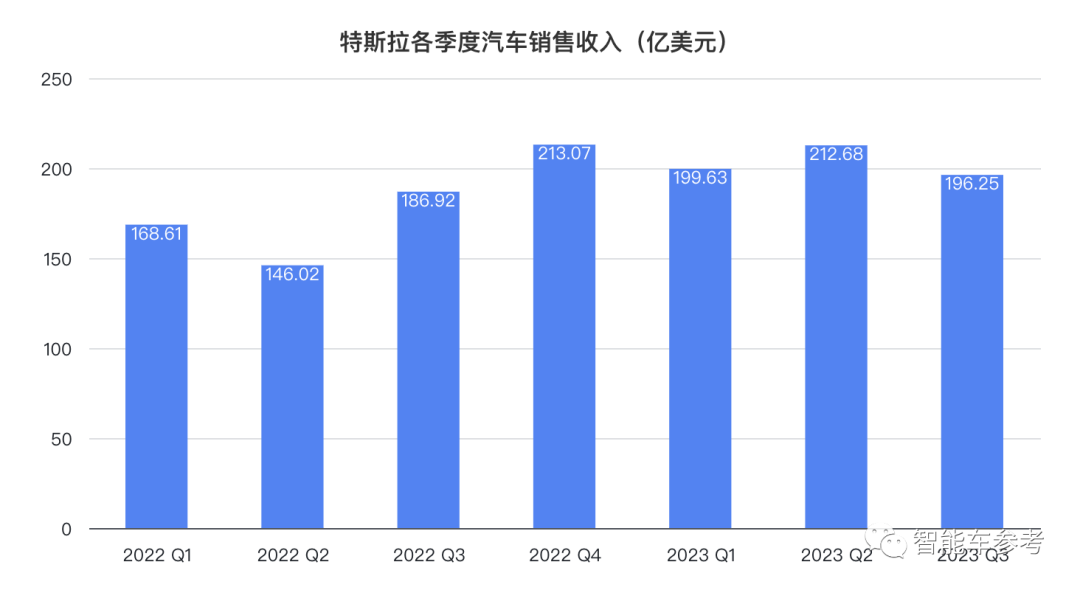 因此汽车销售收入也出现下跌,为196.25亿美元(约1435.73亿元),环比下跌7.73%,甚至不如今年第一季度。