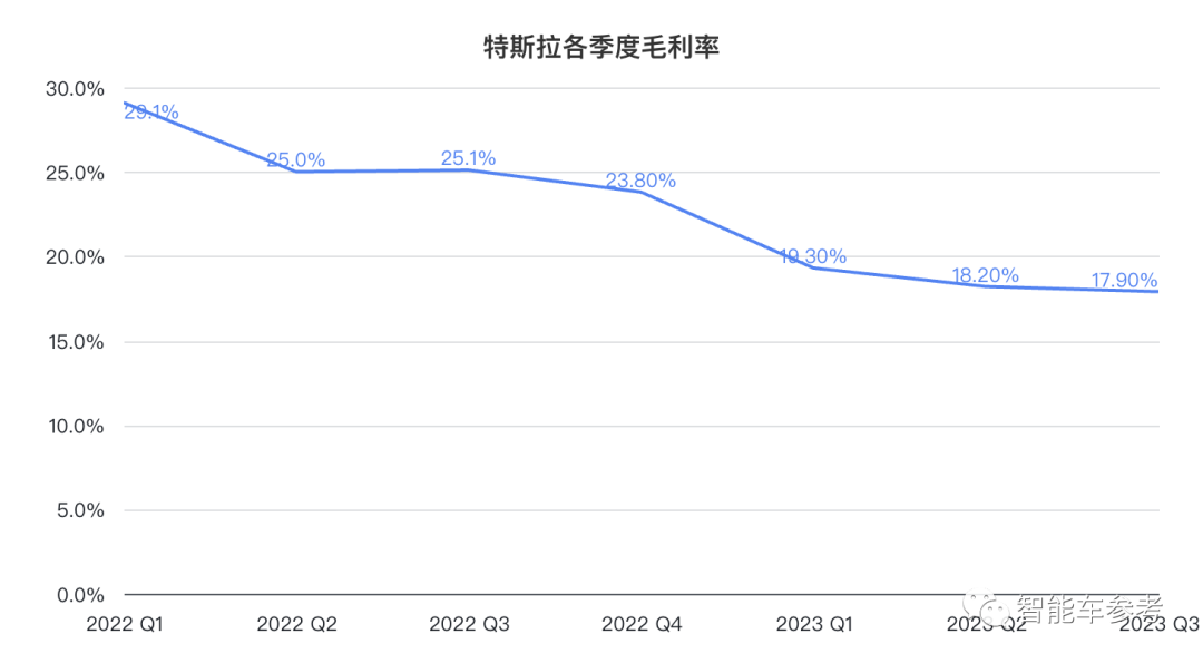 因为特斯拉刚刚发布了一份毛利率跌破18%,净利润大跌44%,挣钱能力达到四年来最低水平的财报。
