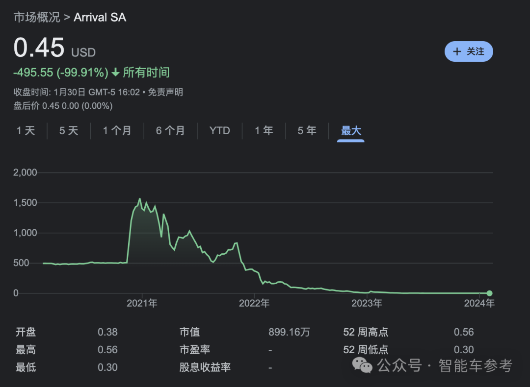 并且在2021年3月,Arrival通过与特殊目的公司CIIG合并,在纳斯达克成功上市,巅峰时期市值一度超过150亿美元。