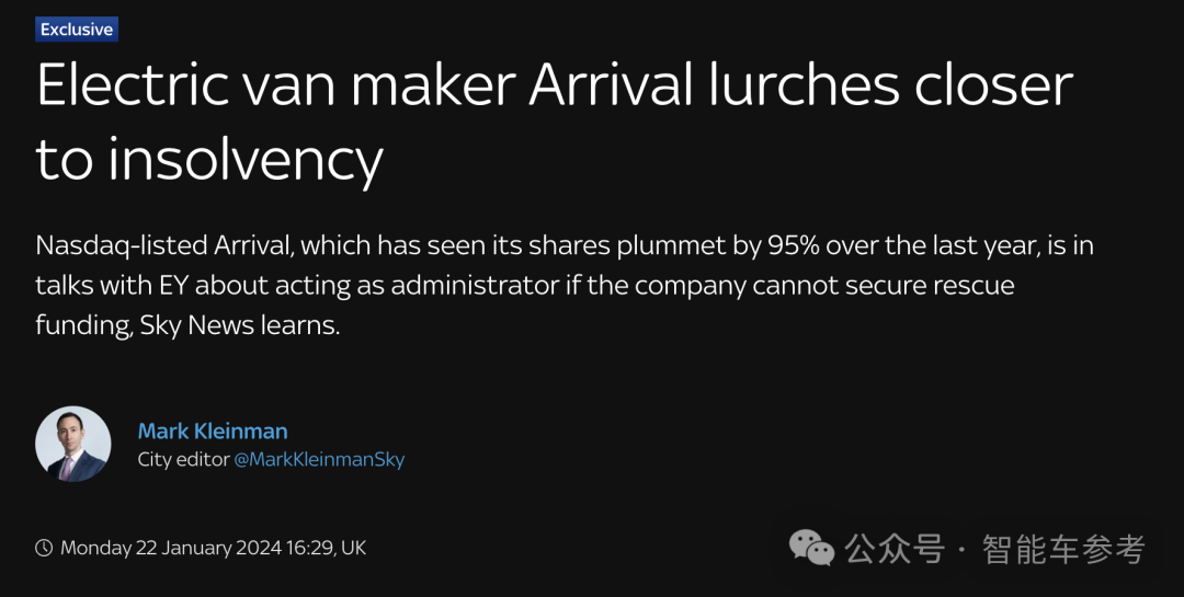 前几天有英国媒体称,Arrival正在和安永会计师事务所谈判,内容是假如公司无法获得救援资金,将由该事务所担任管理人(administrator)。