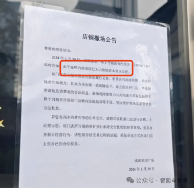 1月底,又有成都和广州的网友先后拍到当地高合门店关门,两地商场给出的回应都是: