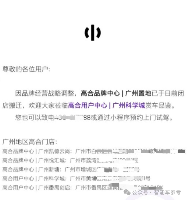 对于广州的关店,高合给出的回应是“战略调整,门店搬迁”,成都地区则未予解释: