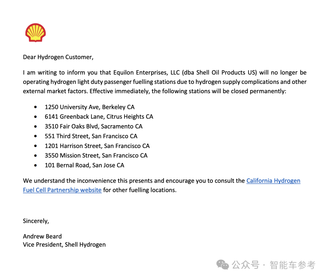 能源巨头壳牌,刚刚宣布决定永久关停加州所有的加氢站。