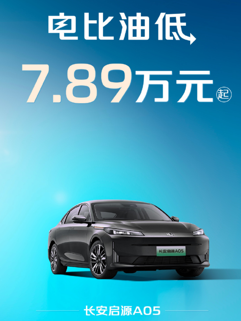 本轮价格战中,最有意思的是长安启源A05的进场,先是网上流出一张「电比油低!低!低!」的海报,海报显示长安启源A05降至7.38万元。