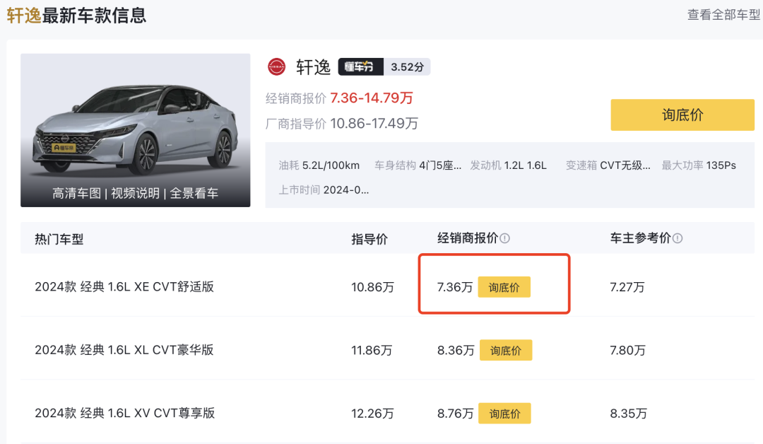 别看轩逸官方指导价10万出头,地方上经销商给完优惠也就是7.37万元,价格很有竞争力,汽车流通协会的数据显示,去年全年轩逸比秦PLUS多卖了近7万台。