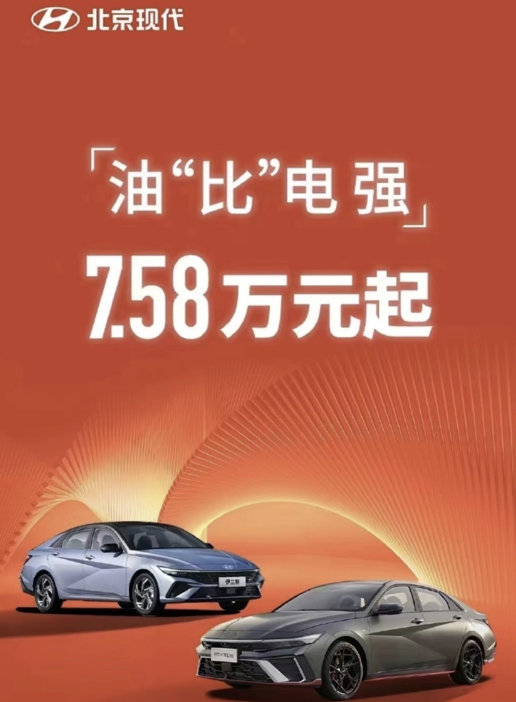 北京现代伊兰特更是针锋相对,起售价降至7.58万元的同时,打出了「油“比”电强」的口号,显然在回应比亚迪的「电比油低」。