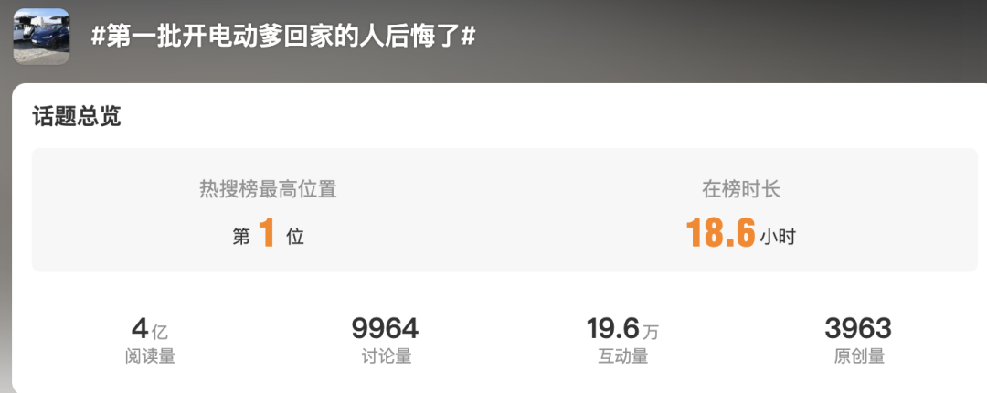 春节期间,“第一批开电动爹回家的人后悔了”再次登顶热搜。