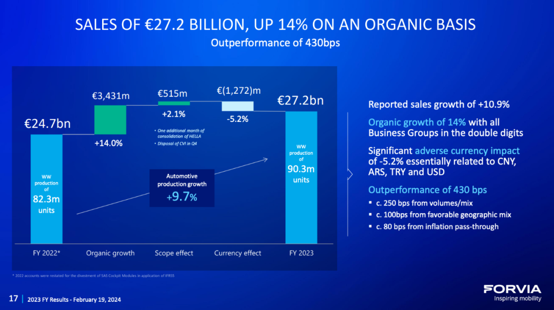Forvia甚至表示,现在全球每卖出两辆车,其中一辆上就有Forvia提供的零部件。