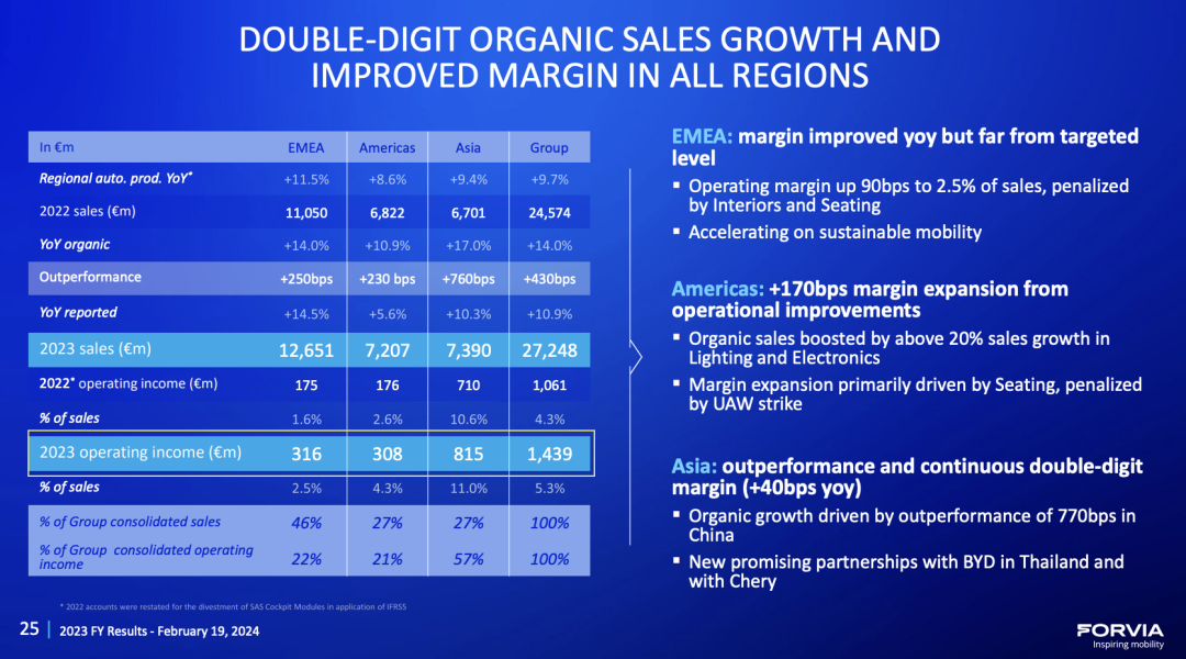 Forvia还透露,2023年亚洲市场的营业利润率达到11%,其中中国市场的也是两位数。
