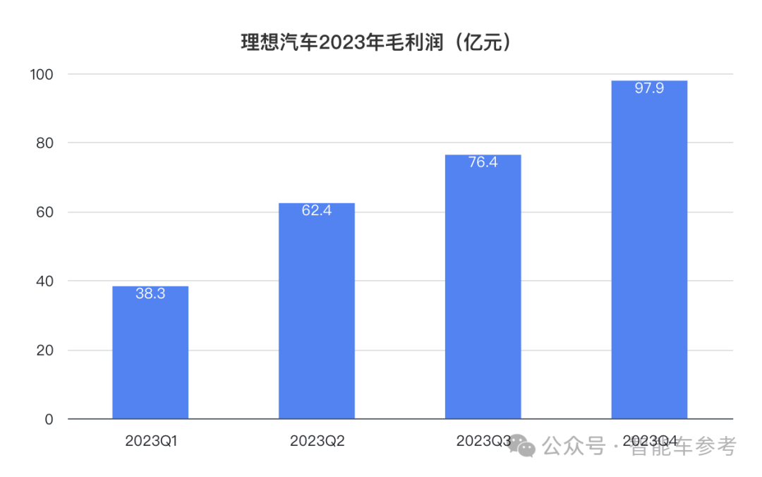 四季度毛利润为97.9亿元,同比增长174.4%,环比增长28%。