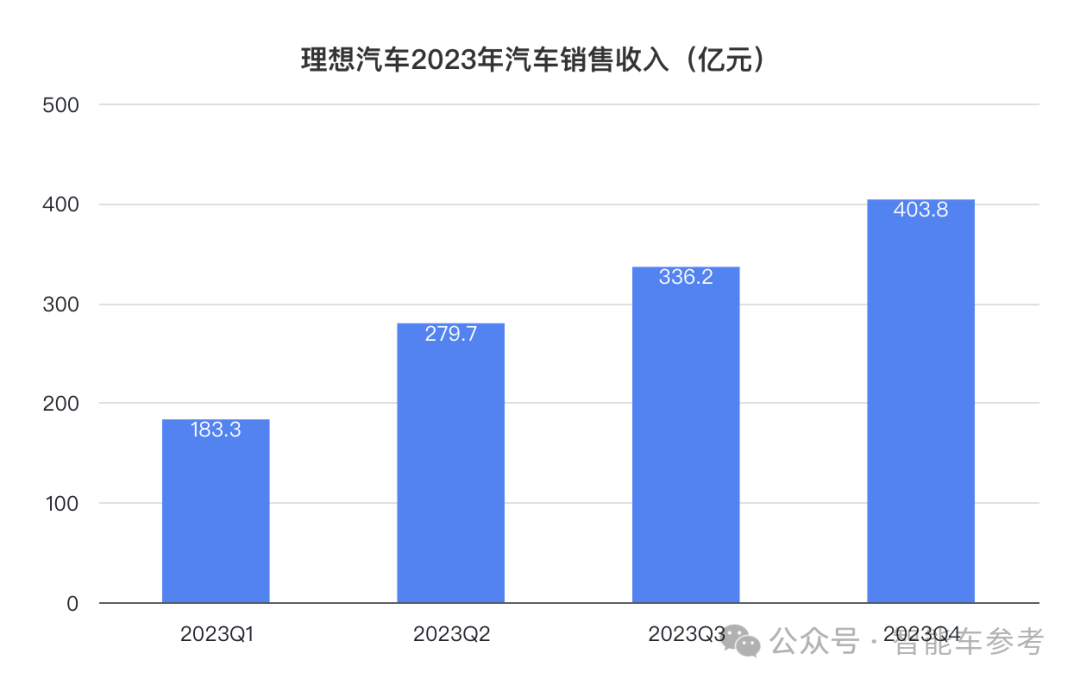顺带一提,理想单季度营收突破200亿,300亿和400亿都发生在2023年,营收实现六连涨。
