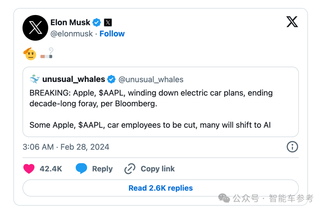 当然,苹果放弃造车的进展传出,马斯克算是松了一口气。